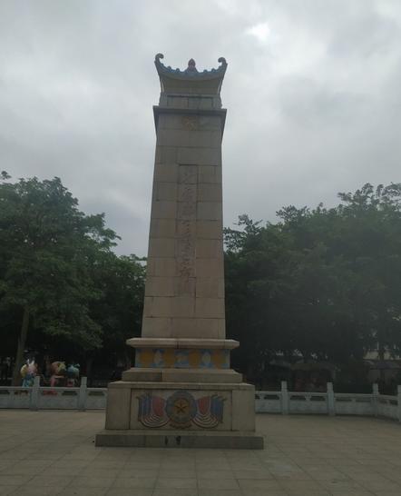 革命烈士纪念碑由碑体、碑文、基座等构成。建筑面积358平方米,坐南朝北。主碑高10米,大理石砌成。台基为方形,长宽各13米,四周竖有大理石栏杆。碑体分两层,为阙式建筑,顶饰有琉璃瓦,第一层正面有浮雕国徽和旗帜,碑正面临毛泽东手体字题“革命烈士永垂不朽”8个大字。纪念碑位于文昌公园内,绿树成荫,环境优美。纪念碑是我市爱国主义教育基地之一,文昌市人民政府于2012年9月13日公布为“文昌市重点文物保护单位。”