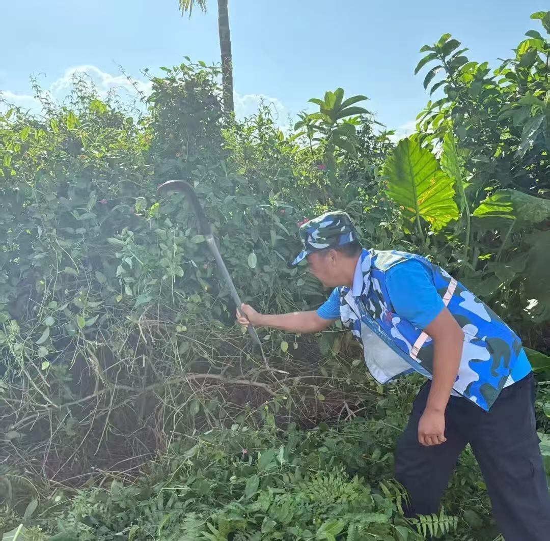 为做好基孔肯雅热和登革热防控工作,2025年9月13日,琼海市大路镇退役军人号角志愿服务队主动配合大路镇政府积极开展防控宣传及环境整治工作。