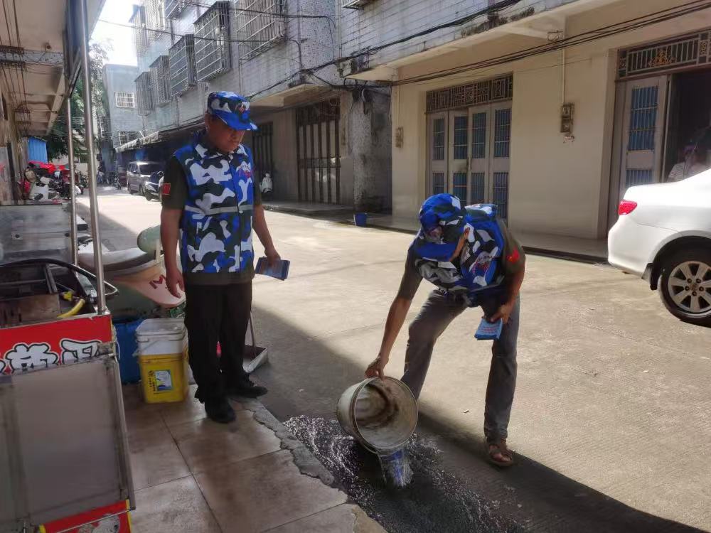为进一步做好基孔肯雅热疫情防控工作,切实保障人民群众身体健康,2025年9月13日,海口市秀英区海秀街道退役军人号角志愿服务队与金鼎社区两委、网格员组成联合工作队,在金环大厦小区深入开展以"防疫有我,爱卫同行"为主题的爱国卫生运动。