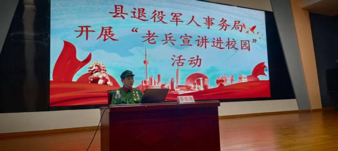 琼中黎族苗族自治县“老兵宣讲团”成员王石福、黎巨清走进华中师范大学琼中附属中学思源实验学校开展“国防教育进校园”主题宣讲活动。活动现场,王石福同志以《心怀国防梦,争做好少年》为题,给师生们上了一堂生动的国防教育课;越战老兵黎巨清用真实的故事和深情的话语讲述了那段既充满艰辛又让人心潮澎湃的烽火岁月。他们以“老兵”身份、从“老兵”视角、用“老兵”语言为在场的师生带来了一次生动的爱国主义教育课程。